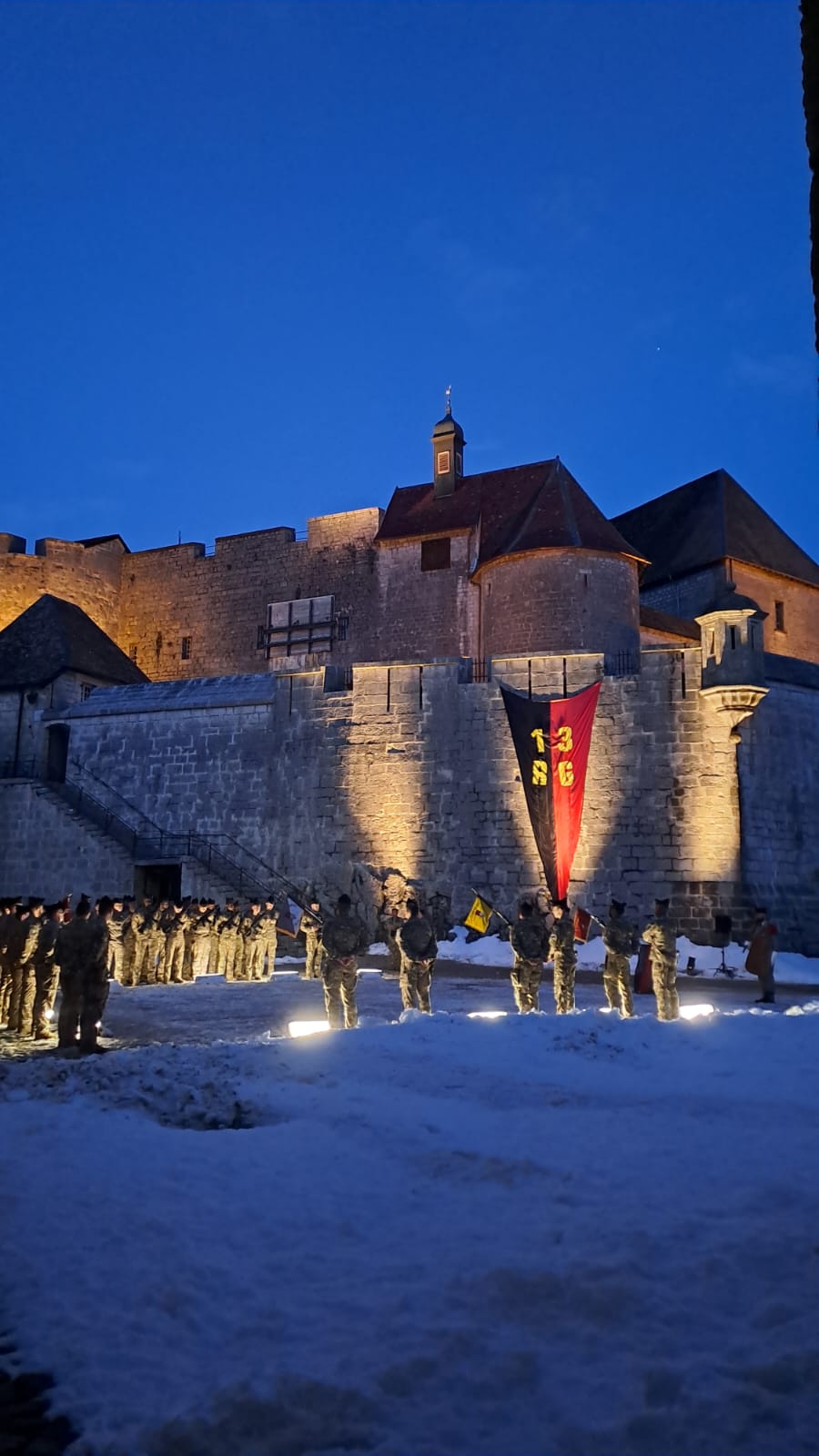 Ce mardi 3 février, le Château de Joux a eu le plaisir d’accueillir une cérémonie militaire dans sa cour d’honneur, un moment solennel et riche de sens au sein de ce site emblématique de l’histoire militaire.